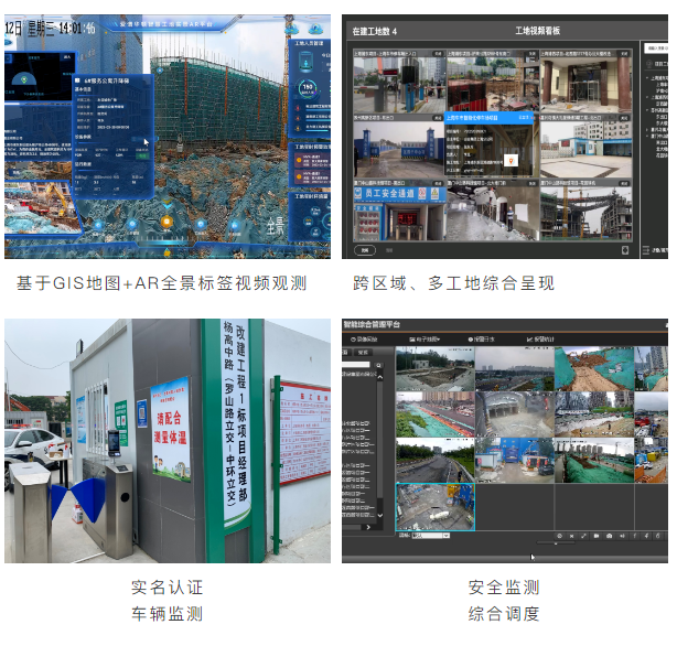 强大的管理功能:支持人员进出口通道管理,通过PAD人脸识别实现现场封闭式人员管理;支持车辆出入过磅通道监测及车辆冲洗时长,冲洗是否达标检测;支持温湿度、风力、PM2.5、噪音监测;扬尘、喷淋联动等环境监测管理及远程控制;支持安全帽、塔吊、物料、危险区域入侵、吸烟监测管理。